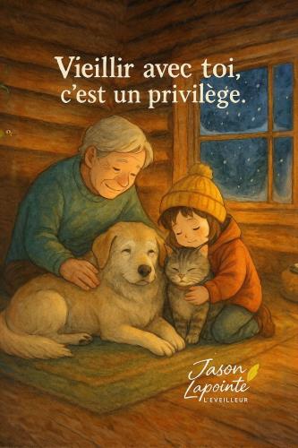 Comment allez-vous ? Poffe tu vas bien ? Hier comme il faisait soleil en début d'après midi , nous sommes allés continuer nos achats ( oh pas trop onéreux :P ) car je ne veux pas être dans la cohue au dernier moment me reste mes dernières petites filles et leur père :P mon autre fils et sa femme c'est toute une histoire car ils sont végans pfffff :^> galère mais on a trouvé ! du côté de Patrice c'est fait *-:) Et vous les copinettes avez-vous fait des cadeaux , arbres déco ? préparez vos menus ? de toutes façon nous c'est simplicité *-:) Bonne soirée à toutes :x :x :x :x :x bises de moua Il y a un moment dans la vie où notre animal devient lent. Pas moins lui. Pas moins heureux. Juste… plus fragile. C’est là qu’on réalise quelque chose : toute sa vie, il a couru vers nous. Maintenant, c’est à nous de marcher à son rythme. Il n’a jamais compté les années. Seulement les moments. Les câlins, les rituels, la joie d’entendre nos pas rentrer à la maison. Vieillir avec lui, c’est un privilège. C’est dire : « T’inquiète pas… je suis encore là. C’est protéger son sommeil, porter son corps quand il peine, et soutenir son regard qui cherche encore le nôtre. Parce que son amour n’a jamais faibli. Il nous a donné toute sa jeunesse,à nous de lui offrir toute notre douceur. Un jour, on regardera en arrière on saura qu’on a bien fait : on a été là jusqu’à la dernière seconde. Nous qui lisons ceci … Notre animal, il a quel âge aujourd’hui? Et qu’est-ce que nous faisons pour lui dire « je t’aime »… même dans le silence ? |